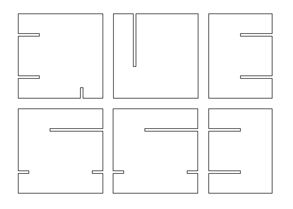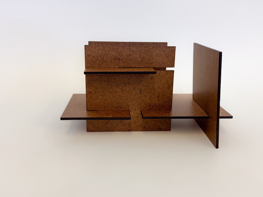 The parameters for this assignment were pretty simple, the container cannot be a cube, and it must be able to stand on at least one side level. We were given a 4” x 4” template with instructions to only cut along the lines and to stop a cut at an intersection point. We could cut pieces off the template, but could not cut parts or chunks out, they had to be straight cuts. We also needed to do male/female junctions so both pieces would fit together securely.