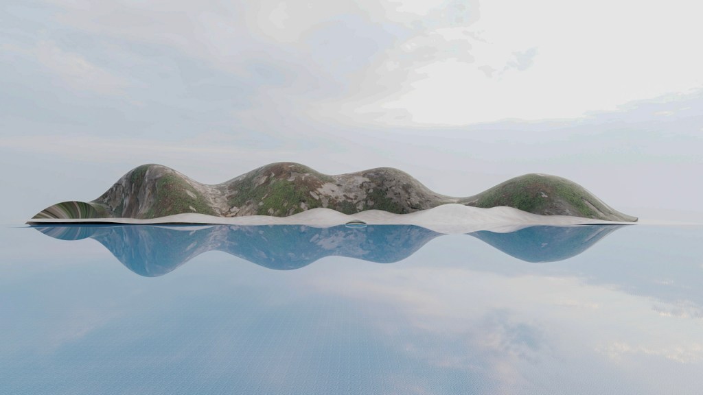 The location of this pavilion is on a volcanic island (may be inactive). This could handle several hundred people to be coming through. The benches are at a height to comfortably sit on, but not complicated enough to become obtrusive to the scene.